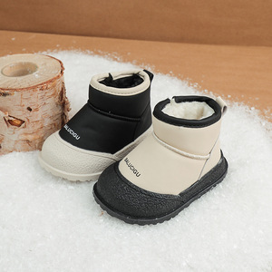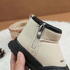 2025年防水男童雪地靴冬新款儿童短靴女童加绒保暖棉靴皮靴防滑鞋