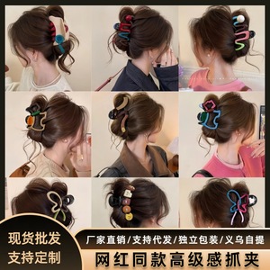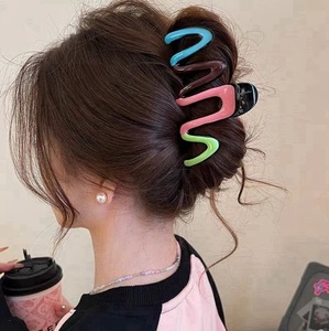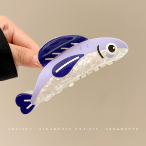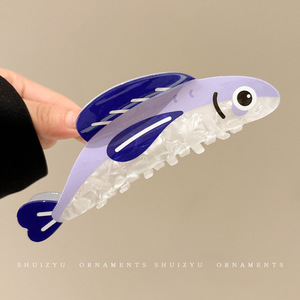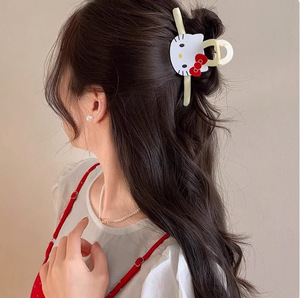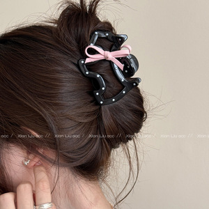 可爱黑白小狗纽扣抓夹渐变撞色波浪鲨鱼夹后脑勺盘发夹发量多头饰