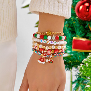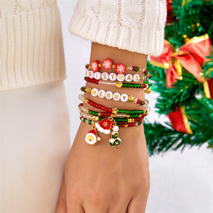 欧美流行手链创意彩色串珠手链字母米珠软陶水晶手链多条叠戴套装