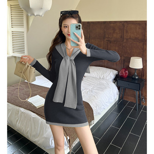 法式气质时尚针织连衣裙2025秋冬新款韩版显瘦小众配披肩铅笔裙女