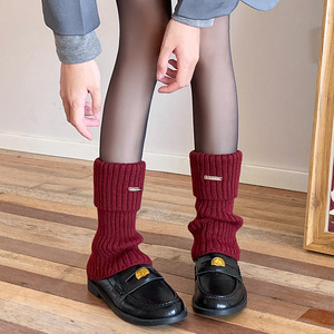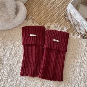 靴尚棉袜套女秋冬翻边金属标堆堆袜复古加厚保暖针织毛线显瘦小腿
