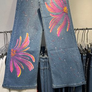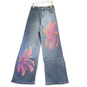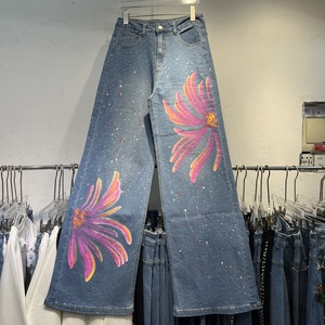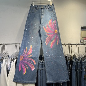 高级设计感手绘花朵牛仔阔腿裤女2025秋季女装新款时尚个性直筒裤