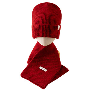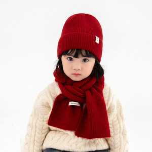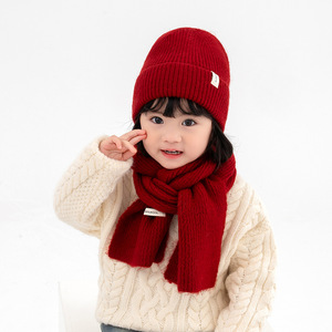 儿童帽子新年红色秋冬季女童针织毛线帽围巾套装男童宝宝保暖冬天