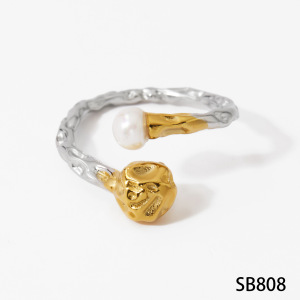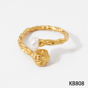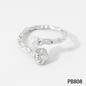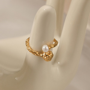 小众不锈钢不规则金属感开口珍珠戒指 ins简约轻奢可调节手饰女士