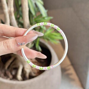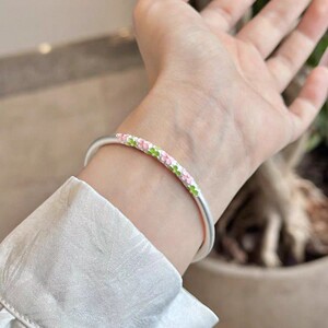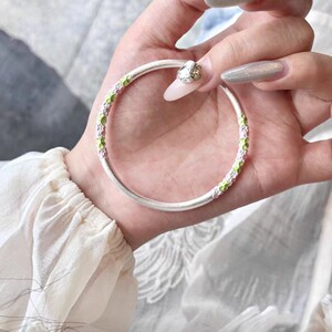 新中式白铜古法圆棍珐琅花卉梅花手镯女国潮风新款百搭实心镯子