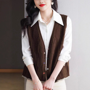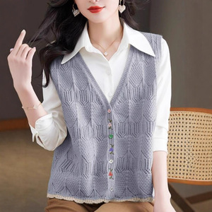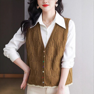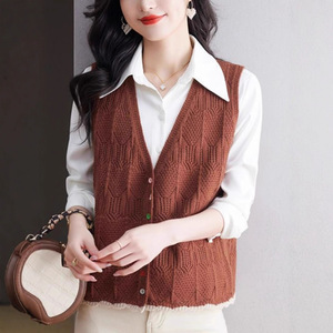 外贸针织马甲背心女2025秋装新款复古绣花毛衣宽松外穿开衫坎肩潮