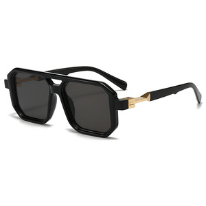 新款跨镜欧美双梁墨镜金属百搭街拍时尚高级感太阳镜防紫外线眼镜