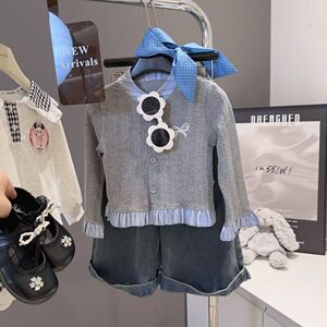 儿童打底衫2025新款女童秋冬款开衫韩版毛衣可爱花边潮流纯色上衣