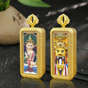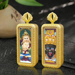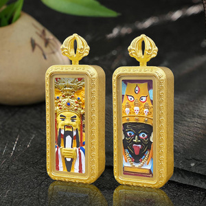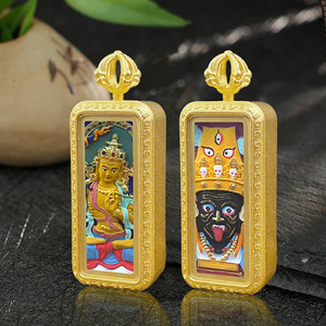 藏式手绘立体扎基拉姆黄财神绿度母五爷狐仙钛刚双面擦擦唐卡吊坠