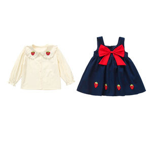 女童吊带连衣裙秋季套装2025新款女宝宝洋气春秋衬衫背带裙两件套