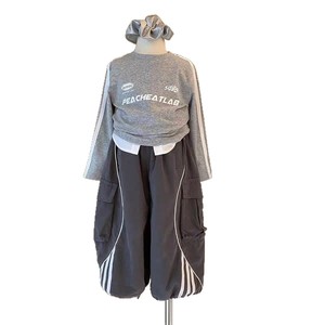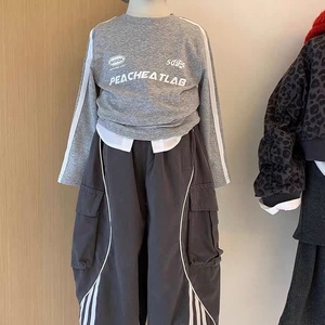 2025秋季新款儿童韩版美式字母印花长袖t恤+工装休闲裤套装