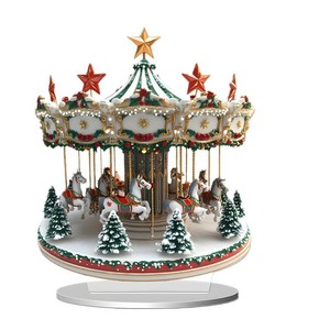 跨境新品圣诞旋转木马2D亚克力立牌圣诞节日互送礼物装饰家居摆件