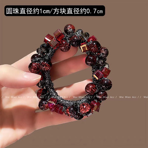 高端紫红色头花水晶发圈女马尾头绳2025新款丸子头扎头发皮筋发饰