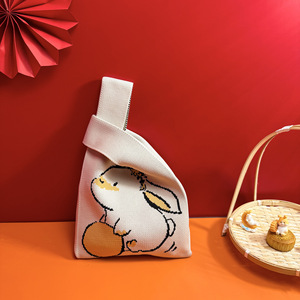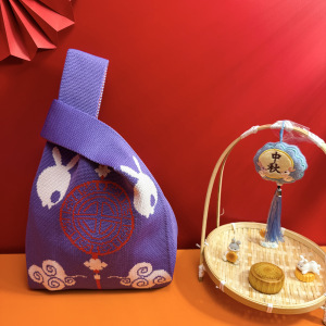 2025中秋兔子针织手提包包托特包编织包水桶包月饼月兔礼包包装袋