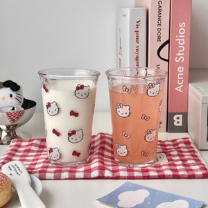 卡通ins可爱kt猫水杯玻璃杯高颜值咖啡杯耐高温家用喝水果汁牛奶