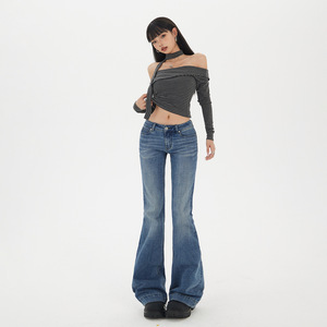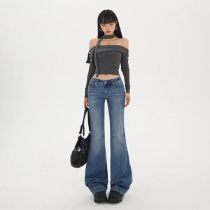 水洗猫须低腰微喇牛仔裤女2025年早秋新款修身显瘦百搭马蹄喇叭裤