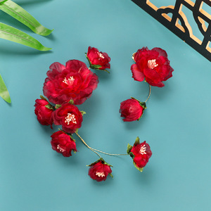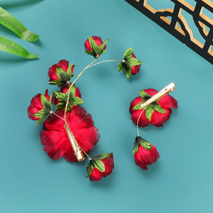 原创设计新款手工古风仙气红色玫瑰花朵烫花汉服发夹旗袍烫花发饰