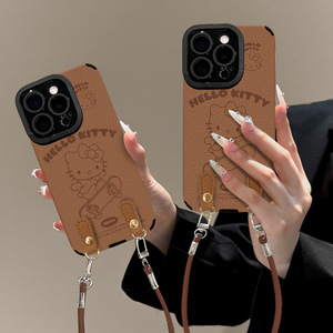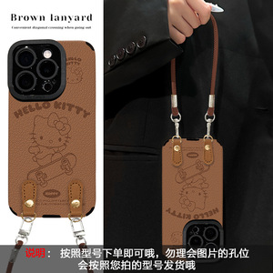 滑板kt猫挂绳适用苹果16promax手机壳13美拉德15贴皮11硅胶防摔14
