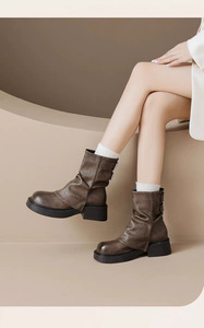 短靴女2025秋冬季新款厚底棕色裤管靴靴堆堆靴低筒短靴马丁靴机车