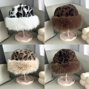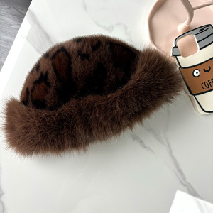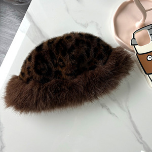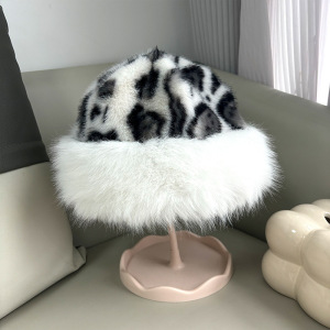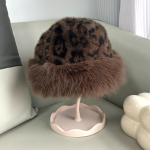 仿水貂毛豹纹蒙古帽秋冬防寒保暖渔夫盆帽圆帽百搭加厚毛绒帽批发
