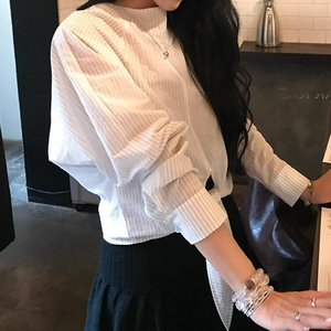 EAR R 松弛条纹 清透韩系插肩袖绑带衬衣女秋宽松廓形防晒衬衫