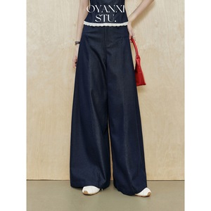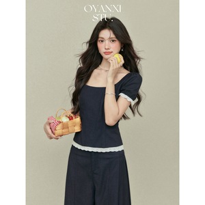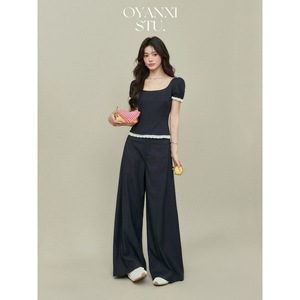 欧阳喜《蓝调时分》u领无袖吊带上衣女夏季高腰牛仔阔腿裤两件套