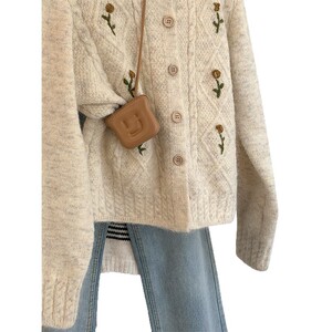 温柔风秋冬加厚软糯毛绒绒复古花朵毛衣2025年新款针织开衫外套女