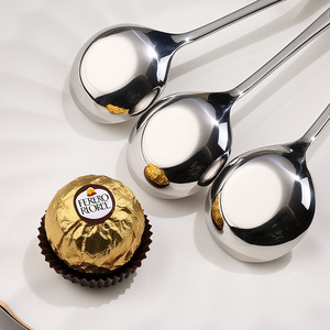 316不锈钢长柄圆头平底勺卡通汤匙餐勺儿童吃饭勺萌趣调羹勺子
