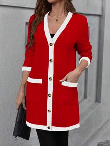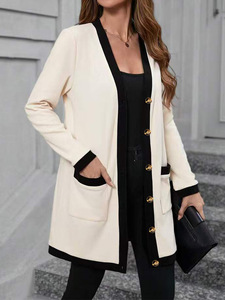 2025跨境欧美女装速卖通爆款时尚简约单排扣饰拼接撞色女式上衣