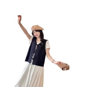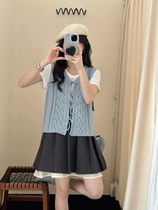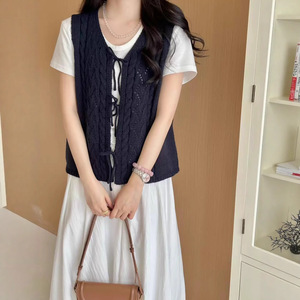韩系设计感钩花系带针织马甲女秋冬新款纯色叠穿马夹开衫上衣1118