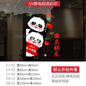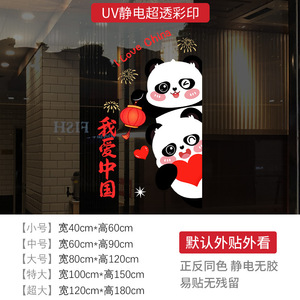 国庆快乐节日装饰熊猫窗贴商场店铺橱窗布置静电玻璃门贴我爱中国