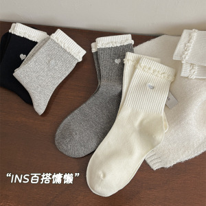 爱心刺绣袜子女秋冬中筒袜韩系ins风堆堆袜防臭吸汗无骨诸暨女袜