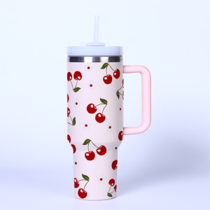 新品跨境粉色樱桃蝴蝶结爱心印花40oz汽车杯定制不锈钢手柄冰霸杯