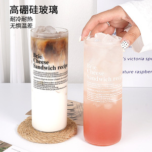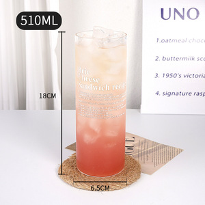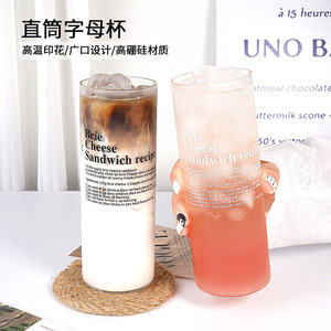 日式直身字母鸡尾酒杯高颜值透明冰茶早餐牛奶咖啡可乐果汁玻璃杯