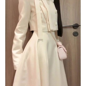 法式小香风套装女秋冬新款蝴蝶结正肩短款外套高腰显瘦气质半身裙