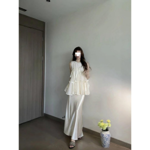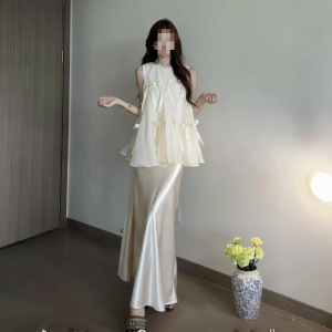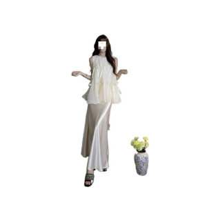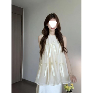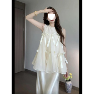 夏季新款甜美减龄套装女夏蝴蝶结背心上衣修身半身裙两件套