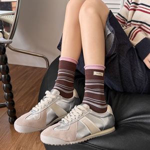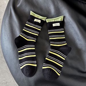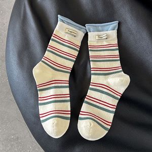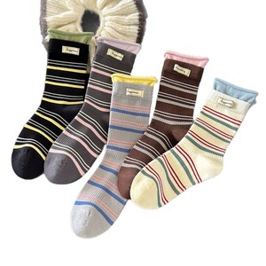 袜子女秋冬撞色布标彩色条纹卷边潮流堆堆袜春秋百搭纯棉中筒袜
