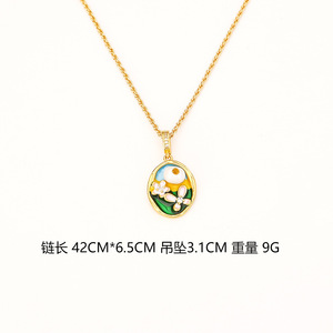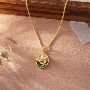 天然淡水珍珠宫廷油画风项链女轻奢高级感莫奈花园椭圆吊坠毛衣链