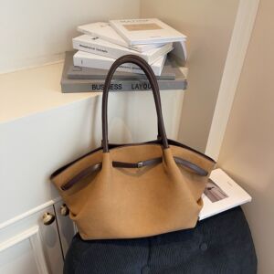 跨境高级翅膀包Demellier磨砂拼接复古女托特包大容量通勤手提包