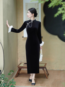 2025秋季新款复古丝绒老上海国风日常名媛风长旗袍