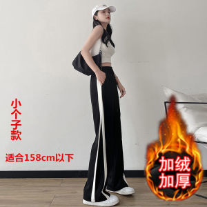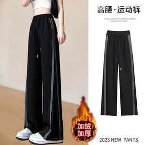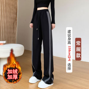 黑色窄款阔腿裤女秋冬新款加绒加厚显瘦直筒裤宽松休闲学生运动裤