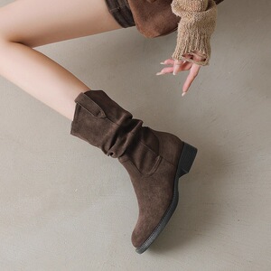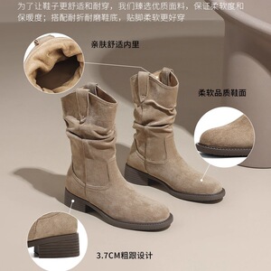 美拉德中筒短靴子女2025新款夏秋季西部牛仔堆堆靴厚底马丁靴单靴