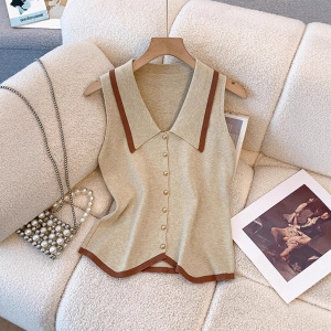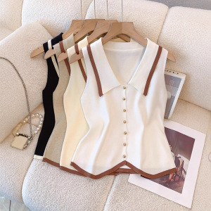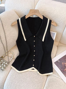 法式无袖针织上衣小香风穿搭假领子修身短款柔软亲肤女士针织衫