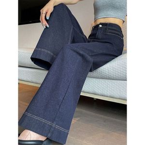 丹宁深蓝色阔腿牛仔裤女秋冬新款垂感修身百搭复古高腰显瘦直筒裤