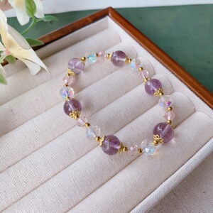 天然星光草莓晶紫水晶柿柿如意琉璃手链海蓝宝抖音烟紫玛瑙直播女