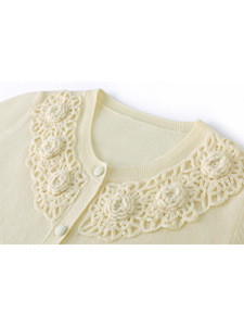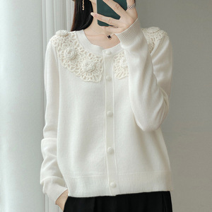 羊毛针织衫女装秋季新款圆领宽松设计感镂空毛衣钩花百搭开衫外套