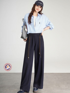 大鹅2025秋季厚新款人棉撞咖牛仔直筒裤子宽松显瘦女士休闲裤女
