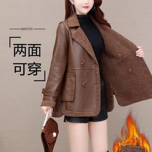 女加绒加厚秋冬海宁新款皮毛一体女士两面外套爆款宽松皮夹克皮衣
