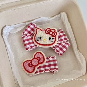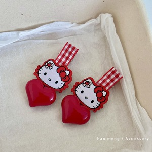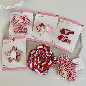 红色系甜美可爱KT格纹樱桃发圈发夹蝴蝶结发夹卡通百搭发饰头饰女
