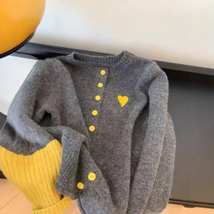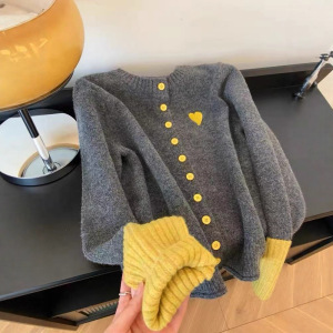 撞色拼接针织开衫毛衣女小个子秋冬内搭可外穿打底高级感正肩上衣